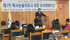 고창교육청(교육장 박종은)이 독서교육의 중요성을 전파하고 가정에서 자녀들을 직접 지도하는 독서논술지도사를 양성하는 제3기 독서논술지도사 과정을 12월 17일까지 3개월동안 운영한다.