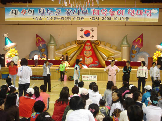 '제4회 장수골 꿈나무 체육놀이 한마당'이 지난 10일 10개 병설유치원생과 학부모 등 200여명이 참석한 가운데 한누리전당 산디관에서 열렸다.