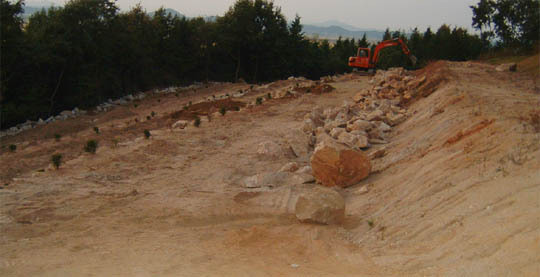 힘겹게 올려진 웅장한 돌들이 쌓여져 계단을 이루고 있었다. 전문가들은 이곳에 운반된 돌만도 대형트럭으로 200차는 넘을 것이라고 설명한다. 4개의 계단으로 이뤄진 복구현장은 봉분만 씌우면 어김없이 묘지가 이뤄질듯했다.