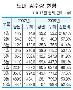 도내 저수지와 광역상수원의 저수량도 예년 수위를 크게 밑돌고 있다. 올 1월부터 16일까지의 강수량이 평균 799mm로 지난해의 52%에 그쳤기 때문이다.