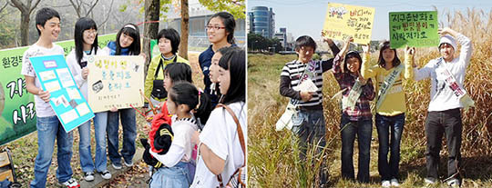 자발적 참여로 이뤄졌기에 두 학교 5인방들은 홍보 대상이 있으면 어디든 마다하지 않는다. 발효엑스포장, 소리문화전당 등 행사가 열리는 곳이나 동물원 등 사람들이 모이는 곳이면 더욱 좋다. 효과적인 홍보를 위해 만들어야 할 플래카드와 배지, 스티커 제작에 용돈도 팍팍 쓴다.