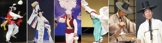 좌도 농악 꽹과리 류명철, 태평무 계현순, 전라우도 상쇠춤 나금추, 승무 문정근, 거문고 김무길, 명창 송재영(왼쪽부터). (desk@jjan.kr)