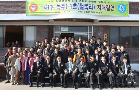 무주군 무풍면 철목마을(이장 한종건)과 (주)녹주 맥반석이 지난 14일 자매결연을 맺었다.