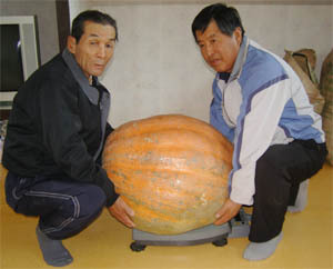 진안에서 50kg이 넘는 대형 호박이 수확돼 지역농가에 화제가 되고 있다.
