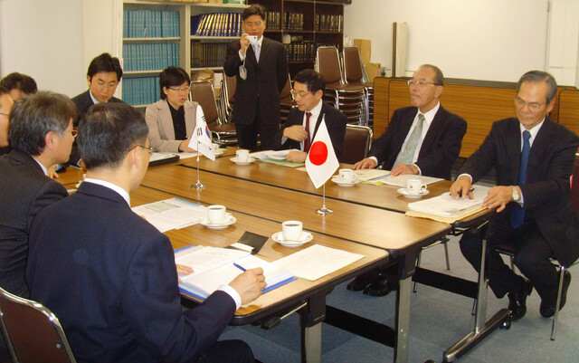일본의 재단법인 식품산업센터 규조 사이토 이사장(뒤쪽 오른쪽 두번째) 등 재단 관계자들이 전북도 한명규 정무 부지사(앞쪽 오른쪽 두번째) 등에게 일본 식품산업을 설명하고 있다. (desk@jjan.kr)