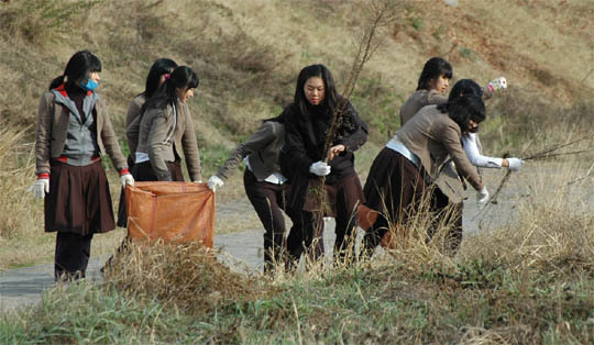 학생들은 이날 전북환경운동연합 이정현 정책실장으로부터 전주천 환경에 대해 설명을 듣고, 외래식물 제거작업을 벌였다.