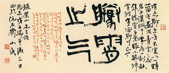 그러나 90년을 넘어서면서 다시 전통서예 쪽으로 되돌아왔다. 유행처럼 번지는 현대서예 속에서 문제점들이 눈에 들어오기 시작했고 현대서예에 대한 갈증만큼이나 연구는 뒤따르지 않는다는 생각에 전통 속에서 현대를 찾아보기로 했다.