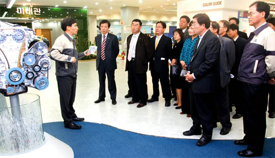 최근 공공기관이 GM대우차 사주기운동 일환으로 GM대우 군산공장을 찾은 도민들에게 공장관계자가 설명을 하고 있다. 오균진(moscow14@daum.net)