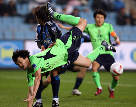 전반 36분에는 박병규가 오른쪽에서 올린 크로스를 골문 오른편에 도사리던 이상호가 오른발로 논스톱 발리 슈팅을 때렸지만 전북 수문장 권순태의 손과 골대를 연달아 맞고 튀어나왔다.