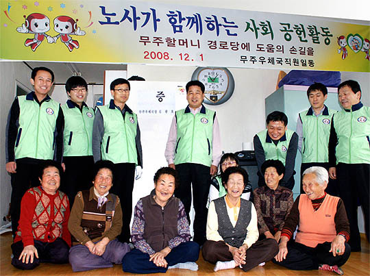무주우체국(국장 김광호)은 한원석 체신노조지부장과 노사합동'우정365봉사단'을 발족해 우정기업문화 정착을 위한 이웃사랑을 펼치고 있어 화제가 되고있다.