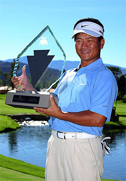 최경주는 1일(한국시간) 미국 캘리포니아주 인디언웰스의 인디언웰스골프장 설레브리티코스(파72.7천88야드)에서 열린 LG스킨스게임 최종 라운드18번홀에서 27만달러 짜리 버디 퍼트를 집어넣으며 모두 41만5천달러를 차지, 우승컵을 들어 올렸다.