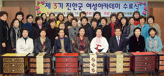 한편 이날 수료식에서 송영선 군수는 "여성 개개인의 소질과 특기를 계발해 행복한 생활을 영위하는데 보탬이 될 수 있는 소중한 기회가 되길 바란다"며 "참여 여성들의 감춰진 잠재력과 적극적인 리더십을 발휘해 지역사회 발전을 위해 더욱 노력해 주길 바란다"고 했다.