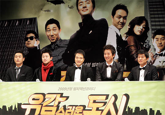 이들은 9일 오전 서울 압구정CGV에서 제작보고회를 갖고 '무간도' 범죄조직에 잠입한 비밀 경찰과 경찰에 파고든 조직원의 맞불 스파이 작전을 다룬 범죄 코미디 영화 '유감스러운 도시'의 제작을 마쳤다고 밝혔다.