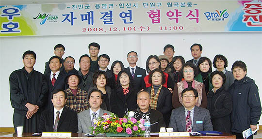 이종신 면장과 서태석 주민자치위원장, 임승원 원곡본동장, 김종설 (원곡본동)주민자치위원장, 등 20여 명이 참석한 가운데 가진 이번 결연은 관주도가 아닌 주민주도로 이뤄졌다는 점에서 의의가 크다.