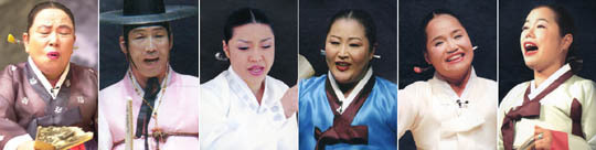 난석 이일주 명창(왼쪽끝). 이일주 명창과 함께 공연하는 제자들. 왼쪽부터 송재영, 김미나. 김연, 차복순, 장문희씨. (desk@jjan.kr)