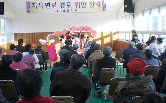 지사초등학생들은 노인 50여명이 참석한 가운데 그동안 갈고 닦은 음악줄넘기를 시작으로 꼭두각시춤, 부채춤 등을 선보이며 노인들을 위로하고 작은 정성을 모아 다과회도 마련하는 등 웃어른 공경을 몸소 체험하는 시간을 가졌다.