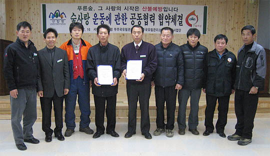 무주국유림관리소(소장 김순기)는 숲을 인위적·자연적 피해로부터 숲을 아름답고 울창하게 유지하기 위해 16일'숲사랑 운동에 관한 공동 협력 협약식'행사를 무주국유림관리소에서 가졌다.