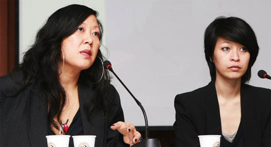 23일 오전 대학로 아르코 미술관에서 열린 '베니스 비엔날레 한국관 커미셔너 및 작가 간담회'에서 커미셔너 주은지씨(왼쪽)와 개인전 초대작가 양혜규 작가가 취재진의 질문에 답하고 있다. (desk@jjan.kr)