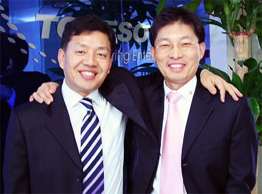 (주)투비소프트 김형곤 사장(오른쪽)과 최용호 부사장. (desk@jjan.kr)