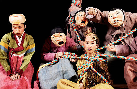 마당극 형식과 소금, 아쟁, 해금 등 국악기와 서양의 건반악기가 어우러지는 현장 연주가 특징.