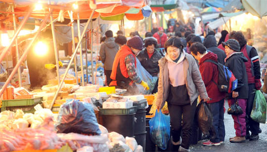 남부시장에서 과일을 파는 김모씨(49). 썰렁한 가게 안 전기 난로에 의지한 채 불평을 늘어 놓았다. 과일 판매가 급격하게 줄어 매출은 지난 해의 반도 못 미친단다. 설 매출도 크게 오르지 않을 것으로 예상, 명절 과일판매도 지난 해의 삼분의 일 수준으로 잡았다. 젊은 사람들은 마트로 가고, 그나마 찾아오는 손님들도 구매량이 신통치 않다며 걱정한다.