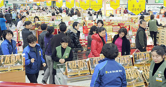 설을 일주일 앞둔 지난 18일 오후, 전주의 한 대형마트는 북새통을 이뤘다.