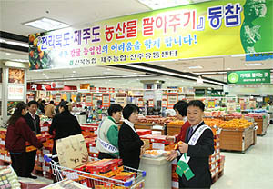 전북농협에 따르면 전북 쌀 소비에 대한 감사로 지난해에 감귤 과잉생산으로 어려움에 처해 있는 제주농업인을 돕기 위해 전북농협 전 임직원이 1만 5천박스(1억3500만원 상당)을 특별판매했으며, 금년도에도 설 명절 특별판매 기간에 1만 박스를 팔아주는 등 연중 팔아주기 운동에 나서 농산물 소비촉진 및 판로개척을 지속적으로 전개해 나갈 계획이라고 말했다.