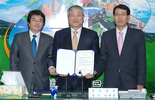 장수군에 따르면 남북 교류사업을 활성화하고 북한 어린이에게 영양 많은 장수사과를 지원하기 위해 평양시 중화군에 '평양어린이 사과농장'을 설립한다. 이에 따라 군은 지난 6일 한겨레통일문화재단·북녘나무보내기운동본부와 협약식을 가졌다.