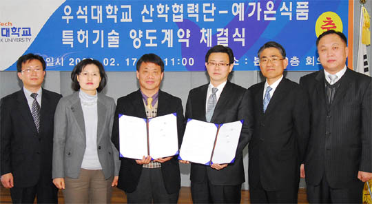 우석대(총장 라종일)가 예가온식품(대표 박현수)과 만성염증 치료 등에 관한 특허기술 양도 협약을 체결했다.