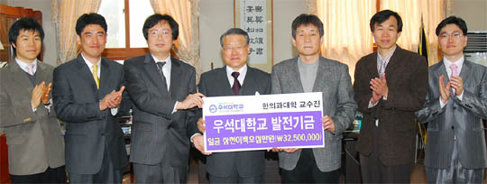 우석대 한의과대학 교수들이 대학 발전을 위해 3250만원의 기금을 마련해 학교 당국에 기탁했다.