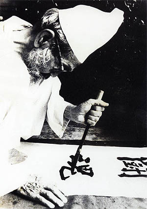 손바닥으로 붓을 잡고 쓰는 악필의 대가였던 석전 황욱 선생(1898~1993).