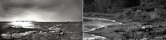 미리 계산된 틀 안에 가두지 않고, 오랜 기다림과 찰나의 접점에서 피어난 작품들. 원하는 색감이 나오지 않는다는 이유로 흑백사진을 고집해왔던 그가 이번엔 귀중한 칼라사진 두 점을 선보였다.