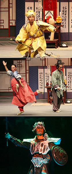 맨 위부터 연극 '다시라기'의 한 장면과 '한지입은 광대', '멕베드'의 공연 모습. (desk@jjan.kr)