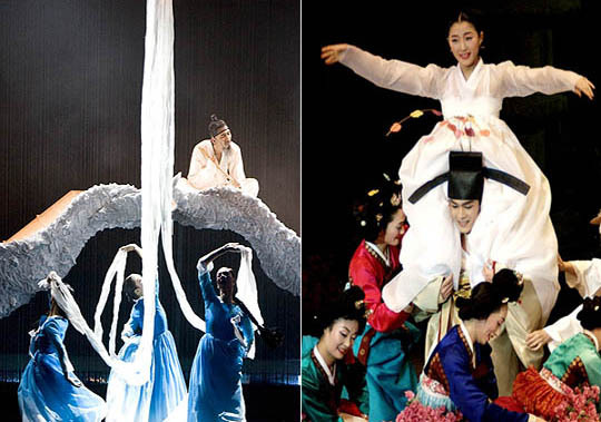 판소리 '심청가'를 바탕으로 한 널마루무용단의 '청의 눈물'(총구성·안무 장인숙)과 '춘향가'를 바탕으로 한 국립민속국악원의 '사랑의 메아리'(공연감독·연출·안무 계현순). 모두 한국춤에 뿌리를 두고 있지만 널마루무용단은 좀더 현대적으로, 국립민속국악원은 좀더 전통적으로 해석했다.