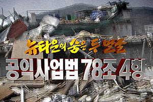 취재 결과 서울시 산하 SH공사나 주택공사 등의 공기업들이 '도로, 전기, 통신 등의 생활기본시설 설치비용은 분양가에서 제외한다'는 "공익사업법 78조 4항"을 어기고 원주민과 철거민을 대상으로 수조 원대의 분양가 폭리를 취해 왔다는 자료와 증언들을 확보했다. 있는 법도 제대로 지키지 않고 무리하게 추진되고 있는 재개발 사업. 주민들의 강한 반발은 제2의 용산사태까지 예고하고 있다.