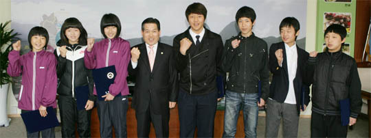 진안군이 제2의 김연아, 박태환을 꿈꾸는 지역 농어촌 청소년 유망선수에 장학금을 전달, 희망의 끈을 이어주고 있다.