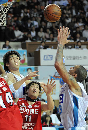 한편 전주KCC는 28일 전주실내체육관에서 열린 2008-2009 동부프로미 프로농구 6강 플레이오프 1차전에선 인천 전자랜드에 109대 81로 대승했다.