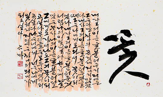 '내가 그의 이름을 불러 주었을 때 그는 나에게로 와서 꽃이 되었다'. 금하 이정은씨의 작품엔 그윽한 묵향에 김춘수 시인의 '꽃'향기가 화사하게 피어난다.