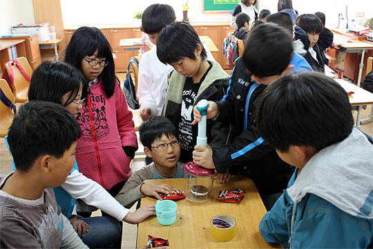 이날 과학축제는 그동안의 딱딱한 진행방식에서 탈피해 모든 학생들이 즐겁게 과학을 체험할 수 있도록 △점토로 연필 만들기 △붕사와 PVA가루로 탱탱 볼 만들기 △기압차를 이용한 초코파이 크게 만들기 등 과학실험 체험 위주로 진행됐다.