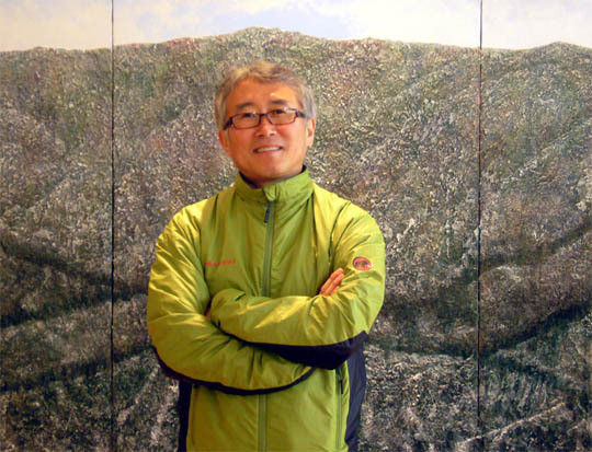 30일까지 갤러리 공유에서 열리고 있는 열여섯번째 개인전 '산을 향하여'엔 어머니 품속을 헤집고 들어간 진솔한 속내가 담겼다. 산을 그려서는 미술계 주류에 설 수 없다는 것을 누구보다 잘 알지만, 이상조 전북대 교수(57)는 고집했다. 자신이 아니면, 넓디넓은 오지랖을 지닌 어미는 아무도 볼 수 없다는 고백. 일종의 사명감이 배어있는 답이 되돌아왔다.