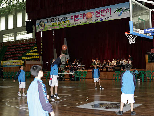 '2009 KBL 총재배 어린이농구 큰잔치'가 지난달 30일 송영선 진안군수, KBL 전 육 총재, 한국초등연맹 이병학 회장 등 내·외빈이 참석한 가운데 진안 문예체육회관에서 화려하게 개막됐다.