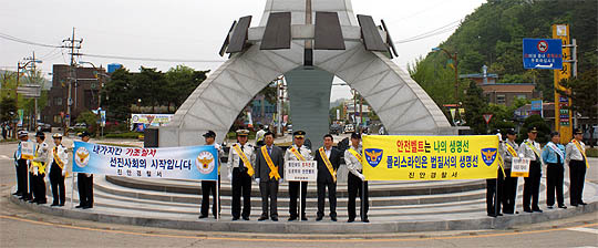 진안경찰서(서장 황종택)는 4일 진안읍 마이로타리에서 경찰과 모범운전자, 자치단체 관계자 등 100여 명이 참여한 가운데 교통캠페인을 전개했다.
