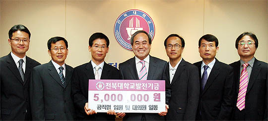 윤성문 공무원직장협의회장은 이날 "대학에 몸담고 있는 행정직원들이 대학발전에 솔선수범하기 위해 뜻을 모았다"며 "대학발전을 위해 소중한 곳에 쓰여지길 바란다"고 말했다.