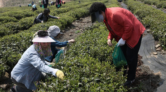 한국여성농업인중앙연합회(회장 이복심)가 회원과 다문화가정 100여명을 초청해 흑암동 현암다원 일원에서 녹차 잎을 따고 직접 만들어 보는 체험행사를 가진 것. 이들은 이날 오전 9시부터 오후 4시까지 찻잎 따기, 녹차 덖기, 우려내기 등을 체험했다.
