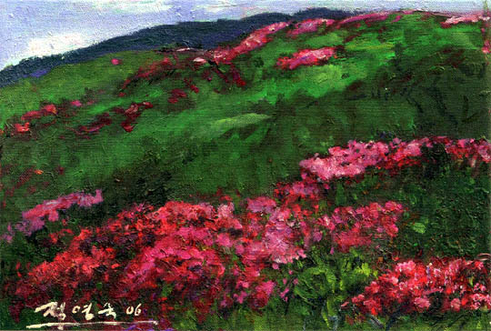 진달래에 취한 지리산을 보면서 '꽃 상여 타고 떠났던 날'을 떠올리고, 빨간 배양귀비를 보면서 '나는 기쁨입니다'를 되뇌인다. 멋쟁이 맨드라미와 있는 듯 없는 듯 어우러지는 망초, 엉겅퀴 등에 눈이 뜨이는 매순간을 발견하게 된다고 했다. 이번 전시는 지난 2006년부터 작업한 총 37점을 추린 것.