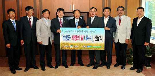 농협중앙회 순창군지부와 군내 단위농협은 20일 순창군수실에서 직원들이 모은 성금으로 마련한 싯가 450만원상당의 쌀 10kg 200포를 사회복지협의회에 전달했다.