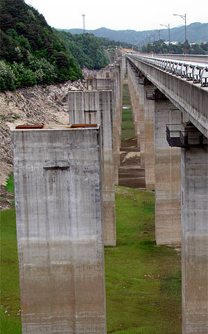 이에 대해 익산지방청 도로시설국 도로공사과 관계자는 "댐만수위를 감안해 미리 세워 둔 이들 교량의 교각의 내구연한이 100년인 만큼 전혀 문제될 게 없을 것이다"며 "4차선 계획도 이번 공사가 끝나봐야 알 수 있다"고 말했다.