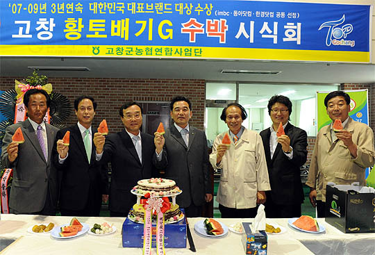 한때 고창수박의 명성이 퇴색하는 위기를 맞기도 했지만 고창군은 수박시험장을 설립하고 우량품종 개발, 연작피해 대책연구 등으로 건강 기능성 친환경 수박을 탄생시켰다. 2004년에는 사업단의 주력사업으로 고창수박 공동브랜드인 고창 황토배기G 수박를 출하, 고품질화에 성공했다.