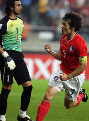 허정무 감독이 이끄는 한국 축구대표팀은 17일 서울월드컵경기장에서 열린 이란과 2010 남아프리카공화국 월드컵 아시아지역 최종예선 마지막인 8차전 홈경기에서 후반 6분 마수드 쇼자에이에게 선제골을 내줬지만 후반 36분 '캡틴’ 박지성의 천금 같은 동점골로 1-1 무승부를 거뒀다.