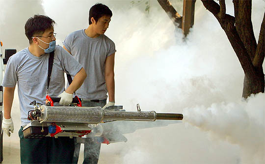 경유를 약제와 섞어 소독하는 연막소독은 환경 오염을 유발하고 시야를 가려 사고 위험을 높인다는 지적이 있어 물을 사용하는 연무 소독으로 점차 바꿔 소독하고 있다. 또, 음식물 쓰레기나 쓰레기 수거 장소 등은 분무 소독을 집중 실시하고 있으며 정화조에도 약제를 투척해 모기 방제를 하고 있다.